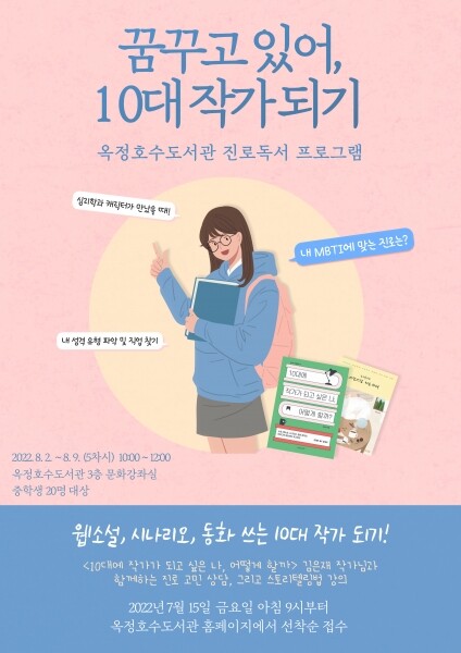 시 도서관 관계자는 “이번 프로그램을 통해 청소년들이 진로에 대한 고민을 덜고 글 쓰는 방법을 재미있게 배우는 시간이 되었으면 좋겠다”고 전했다.