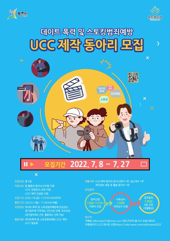이번 사업은 폭력 예방과 시민들의 인식개선을 위한 ‘2022년 광주시 양성평등기금 공모사업’으로 보조사업자 위드커리어를 선정해 추진하고 있으며 광주시민 2인 이상 단체 또는 광주시 소재 사업장 및 학교에 재직하며 활동하는 단체는 지원 가능하다.