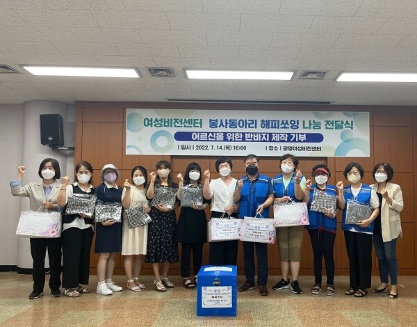 이번 나눔은 여성비전센터의 정규 교육 패션과정인 ‘트렌드패션과 데일리백 제작 창업’, ‘패션의상 제작 및 수선 창업’ 등 2개 반의 강사와 수강생 9명으로 구성된 봉사 동아리 ‘해피쏘잉’에서 약 3개월에 걸쳐 제작한 반바지를 기부해 이루어졌다.