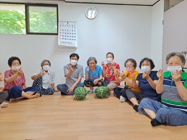 또한 어르신들의 건강에 이상이 없는지 살피고 수박을 전달하며 안부를 물었다.