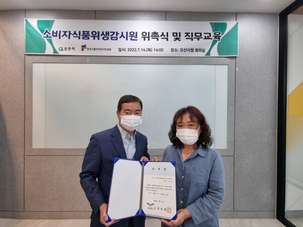 오산시 소비자식품위생감시원은 임기만료 및 해촉 사유로 결원 발생 시 연1회 선발되며 올해 위촉된 감시원은 향후 2년간 오산시 관내 위생업소를 대상으로 공무원과 함께 점검반을 편성해 식품 등 수거검사 및 지원, 전통시장 위생 향상 계도, 건강기능식품 등의 허위·과대광고 감시, 학교 주변 어린이 기호식품 지도점검 등 먹거리 안전지킴이로 홍보 및 감시 활동을 하게 된다.