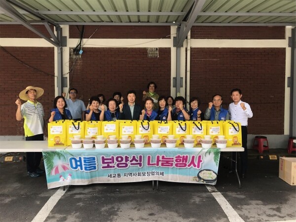 행사를 주관한 세교동 지역사회보장협의체 정종분 위원장은“위원들이 정성껏 준비한 삼계탕과 김치를 드시고 올 여름 무더위를 잘 이겨냈으면 좋겠다” 라며 “우리의 관심이 더더욱 절실할 때라며 주변에 어려운 이웃이 있으면 세교동행정복지센터나 지역사회보장협의체 위원들께 연계해줄 것”을 당부했다.