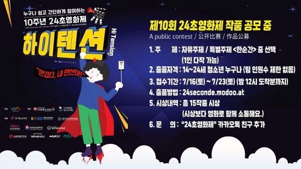 올해로 10회째 맞이하는 ‘24초영화제’ 응모는 만14~만24세의 청소년이면 누구나 참여할 수 있다.