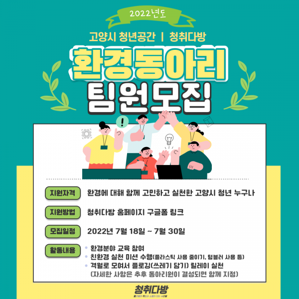 청년 환경동아리는 청취다방에서 진행한 청년작당 프로젝트 1탄 ‘나의 환경해방일지 쓰기 챌린지’에서 발전된 아이디어이다.