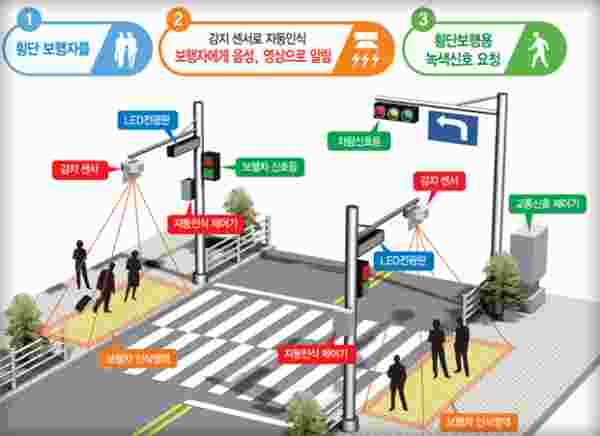 보행자 자동인식 시스템은 횡단보행자가 횡단보도 앞 보행자 인식영역에 대기를 하면 보행자 작동 신호기의 버튼을 누르지 않아도 자동으로 보행자의 유무를 감지해 보행신호를 부여하고 보행신호의 상태를 전광판과 음성으로 제공해 안전하고 편리한 보행환경을 제공하기 위한 시스템이다.