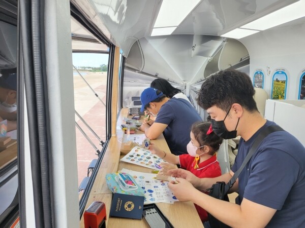 홍보관에서 방문객은 종이 여권에 스탬프를 찍고 기내 좌석에 앉아 모니터로 경기바다 영상을 즐겼으며 탑승 사진도 즉석에서 인화해 바다 여행의 즐거움을 남겼다.