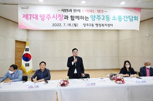 강수현 양주시장은 “민선 8기가 출범하고 개최하는 첫 주민간담회를 통해 시민이 진정으로 무엇을 원하는지 파악하고 지역 발전 기반 마련을 위한 끊임없는 노력을 이어나가겠다”며 “일회성 간담회가 아닌 시민과 지속 발전 가능한 소통창구가 될 수 있도록 간담회를 지속적으로 열고 시민과 더 가까운 곳에서 끝없이 소통할 것”이라고 말했다.