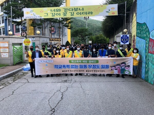 이번 캠페인은 일동면 청소년지도협의회, 일동중학교 교사 및 학생, 일동파출소, 일동면행정복지센터 직원 등 20여명이 참여한 가운데 ‘학교폭력 없는 일동, 우정도 일등’이라는 슬로건으로 진행했다.