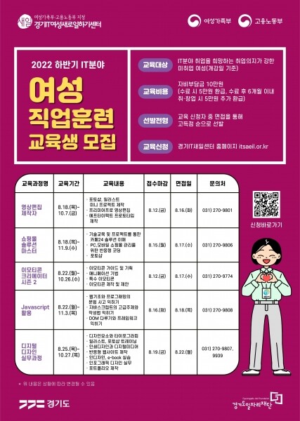 자세한 사항은 경기IT새일센터 누리집을 확인하거나 여성새일1팀으로 문의하면 된다.