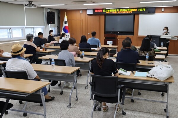 도시농업전문가 양성과정을 수료한 교육생 18명은 지난해부터 시작한 과정으로 2021년에 44시간 교육에 참여, 2022년에는 지난 4월 25일부터 7월 18일까지 이론과 실습교육 46시간 과정으로 총 90시간으로 구성된 교육에 참여했다.