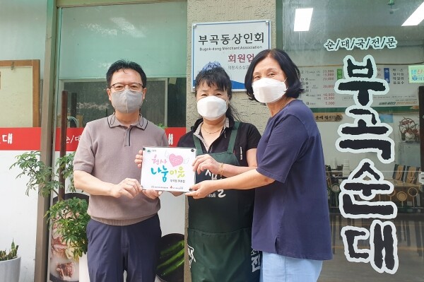 이영희 부곡동장은 “어려운 시기에 좋은 일에 동참해주신 대표님과 지역 내 상생과 나눔에 관심을 가져주신 상인회에 감사드린다”고 답했다.