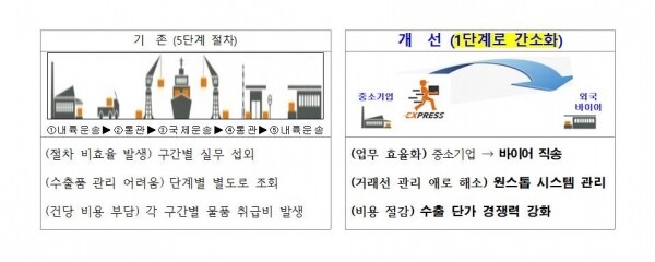 수출업체가 제품을 내륙운송 후 통관을 거쳐 해상·항공 운송으로 수입국까지 보내고 통관을 거쳐 수입국에서 내륙운송까지 진행해야 하는 5단계 수출운송 절차를 수출업체가 바이어에게 우체국 국제특급으로 직배송하는 ‘도어 투 도어’ 방식으로 간소화했다.