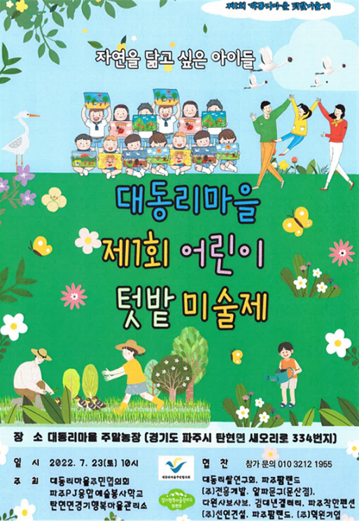 이번 행사는 파주형 마을살리기 공모사업 2위로 선정된 ‘대동리 마을 대동경 체험장’ 완공을 알리고자 마련됐으며 특히 아이들이 자연 속 창작활동을 통해 자연의 소중함을 알고 농부들의 삶을 존중하는 아이로 자랄 수 있도록 하고자 한다.