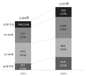 실제로 경기도 시·군 연령대별 공무원 규모를 살펴본 결과, 최근 5년간 젊은 세대 공무원이 증가하는 경향이 수원시, 고양시, 성남시 등에서 나타났다.