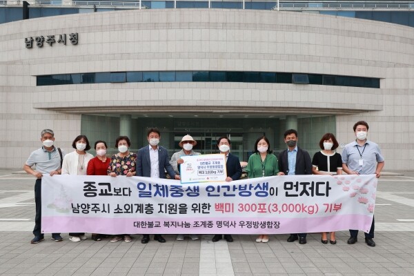 우정스님은 “경제 위기에 많은 어려움을 겪고 있는 소외계층을 위해 백미 300포를 지원할 수 있게 도와주신 신도들을 비롯한 여러 관계자분들께 감사드린다”며 “명덕사는 앞으로도 남양주시의 소외계층을 위한 나눔 활동을 계속 이어 나가겠다”고 밝혔다.