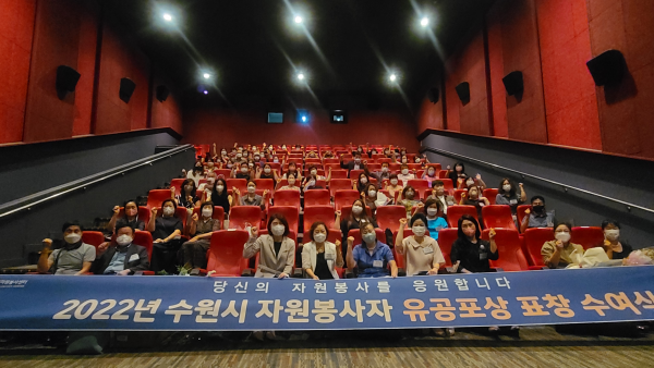 자원봉사자 유공포상 시상식은 수원시자원봉사센터에서 매 분기마다 유공포상 심의회에 선정된 봉사자를 대상으로 각 훈격별 표창전달과 자원봉사 인정보상 차원에서 영화관람을 진행하고 있다.