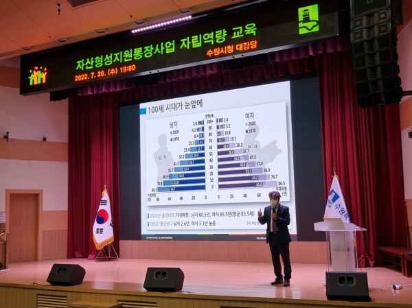 태용기 국민연금공단 노후준비서비스팀 차장, 서민선 수원지역자활센터 자산형성지원사업팀 팀장은 자산형성지원사업 안내 평생급여 프로젝트 올바른 자산 관리 방법 등을 주제로 교육했다.
