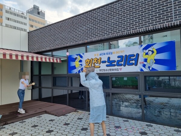 회천노리터는 청소년들의 스트레스 해소 및 건전한 여가문화의 활성화를 위해 기획된 아동·청소년 누구나 참여할 수 있는 이벤트로 다양한 즐길거리와 함께 매월 세 번째 토요일마다 운영되며 이번 7월 회천노리터는 청소년들이 그려나가는 문화활동이라는 뜻의 청소년동아리 ‘청그린’ 이 기획하고 진행했으며 지역 내의 아동·청소년들 약 400명이 참여했다.