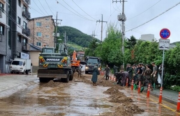 이에 제1101공병단은 6월 30일부터 7월 1일까지 장병 100여명과 포크레인 1대 및 15톤 덤프트럭 2대를 지원, 도로에 쌓인 105톤 분량의 토사를 신속하게 제거해 수해복구 작업을 완료했다.
