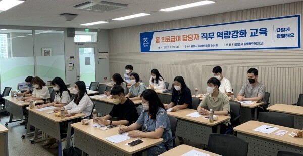 이번 교육은 의료급여제도 빈도 높은 민원 사례공유 및 민원 처리 방법 의료급여사례관리 내용 및 진행 사항 등을 공유하며 의료급여제도에 대한 이해도를 높이고 동별 업무 협조체계 구축 등으로 담당자 간 유대관계를 강화해 원활하고 신속한 민원 행정 처리를 위해 마련됐다.
