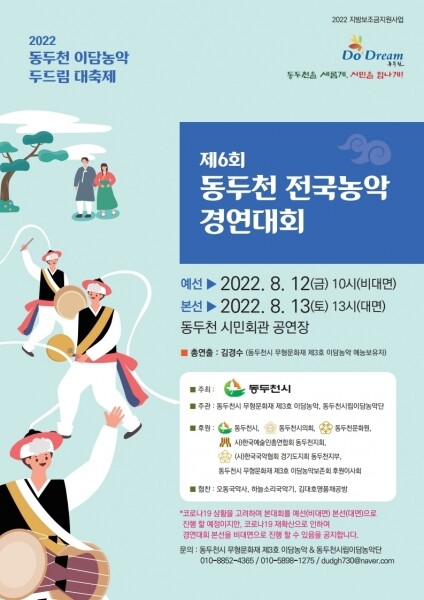 코로나19 상황에 따라 8월 12일은 비대면으로 예선을, 13일은 대면으로 본선을 진행하며 신청 안내 및 제출서류 등은 동두천시청 홈페이지에서 확인할 수 있다.