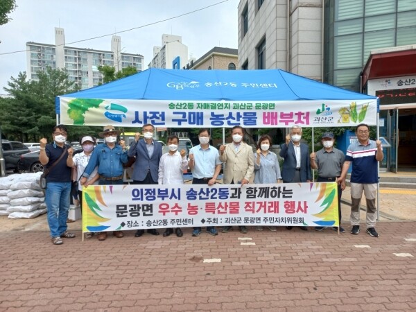 송산2동은 괴산군 문광면과 2010년 6월 자매결연 체결을 시작으로 매년 지속적으로 도농교류를 실시해오고 있으며 상반기에는 대학찰옥수수, 꿀, 오디 등 농산물을 하반기에는 절임배추를 저렴한 가격으로 판매해 주민들의 뜨거운 호응을 얻고 있다.
