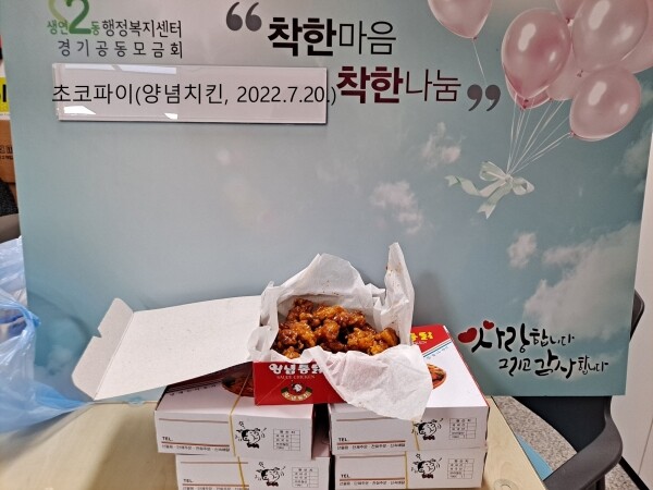 초코파이는 2020년 7월부터 생연2동의 착한식당으로 참여해 매달 관내 저소득 취약계층 가구를 위해 치킨을 후원하며 이웃사랑을 실천하고 있다.