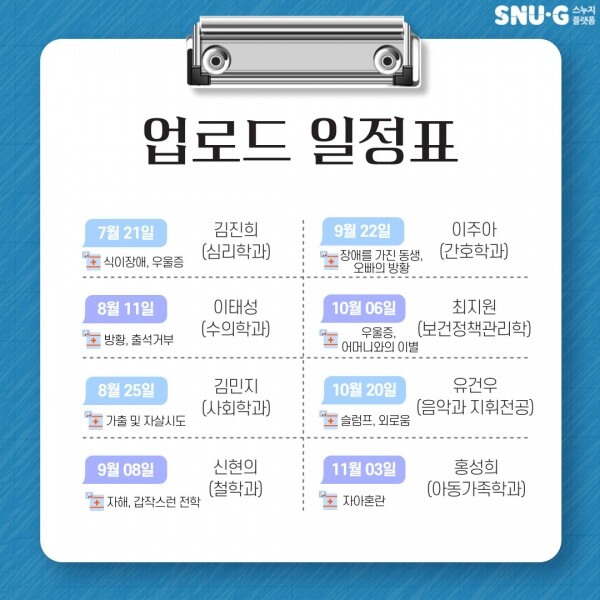 이번 첫 영상은 심리학과 김진희 학생이 참여해 성장통 이야기를 들려줬으며 이후 서울대생 7명의 이야기를 오는 11월 3일까지 매주 목요일마다 업로드할 예정이다.