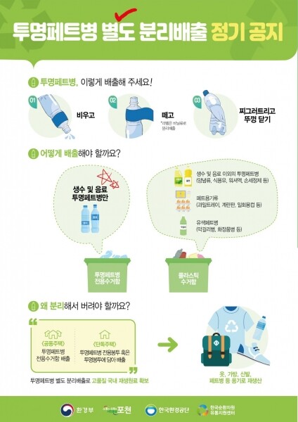 이번 집중 홍보는 식음료 페트병이 집중적으로 소비되는 하계 휴가철을 맞아 ‘투명페트병 별도 분리배출제’에 대한 국민 인식 개선과 참여 활성화를 위해 진행한다.