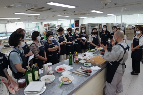 서울 영통사 보전스님과 함께한 이번 교육은 사찰음식 요리법 연구라는 주제로 육식을 선호하는 학생들의 식습관 및 채식에 대한 인식 개선을 위해 관내 농산물과 제철 식재료를 이용해 추진됐다.