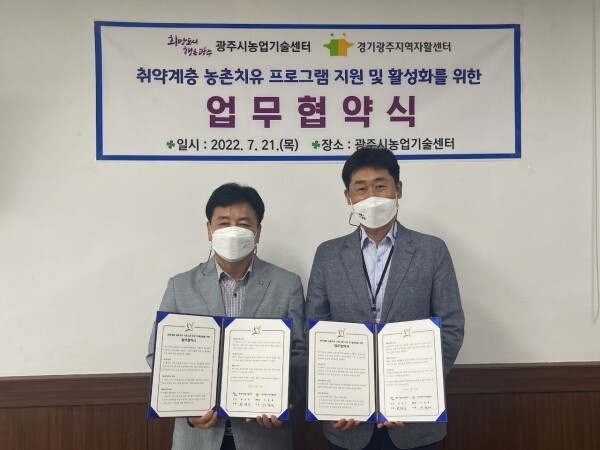 한정인 농업기술센터 소장은 “이번 협약을 통해 자활근로자에게 심신 건강에 도움이 되길 바란다”며 “농촌 자원을 활용해 인지기능 강화, 정서 안정에 도움을 줄 수 있는 광주시 고유의 농촌 치유프로그램을 개발해 지역 내 소외계층을 대상으로 프로그램을 확대 운영할 계획”이라고 밝혔다.
