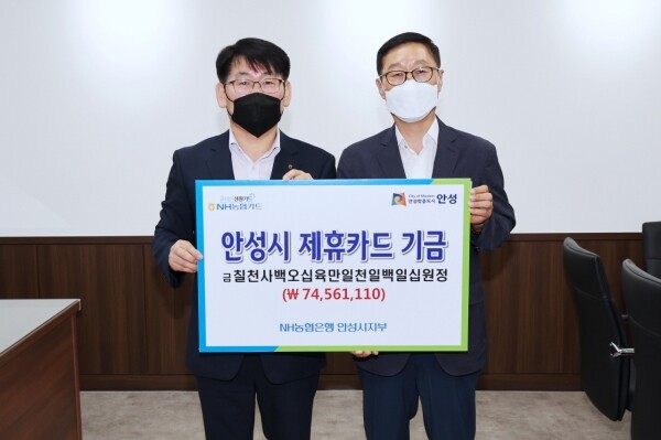 이날 전달받은 기금은 안성시와 NH농협은행 안성시지부 간 업무제휴로 발급된 안성시청 법인카드, 보조금카드, 공무원복지카드 등의 이용 실적에 따라 적립된 금액이다.