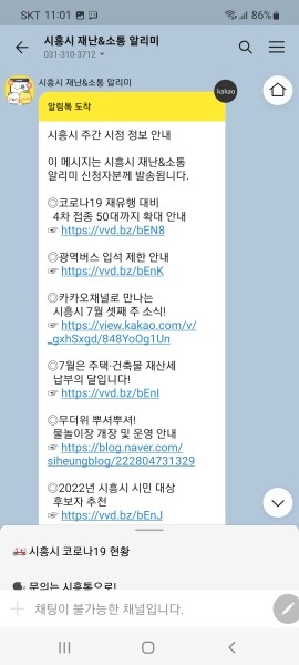 알림톡 서비스는 기존의 SMS 문자 홍보 방식보다 최대 70% 요금이 저렴한 편인데다, 시민들은 개별 문자로 받아 보던 민원 내역을 카카오톡 ‘시흥시 재난&소통 알리미’ 알림톡 채널을 통해 통합된 메시지로 더욱 쉽고 편리하게 접할 수 있다.