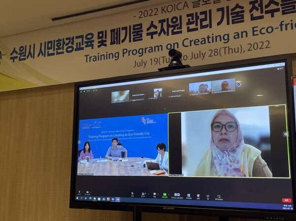 수원시 환경 분야 전문가가 수원컨벤션센터 화상회의실에서 인도네시아 공무원 18명을 대상으로 비대면 연수를 진행한다.