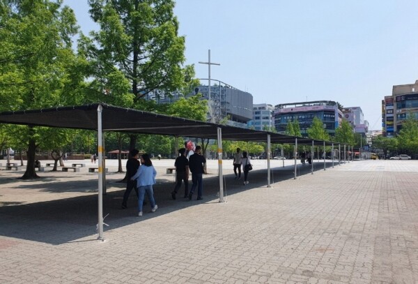 유동인구가 많은 곳에 100m 길이의 그늘막이 생겨 시민들이 보다 쾌적하고 편리하게 이동할 수 있게 됐다.