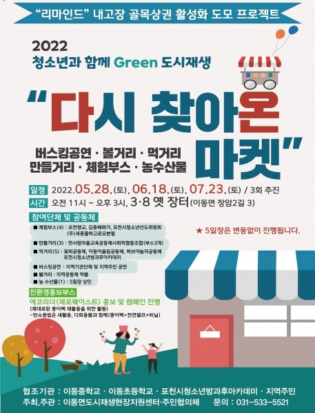 ‘다시찾아온마켓’은 지난 5월과 6월을 거쳐 3회째로 이동면 장암리 3.8 옛 장터 일원에서 개최됐다.