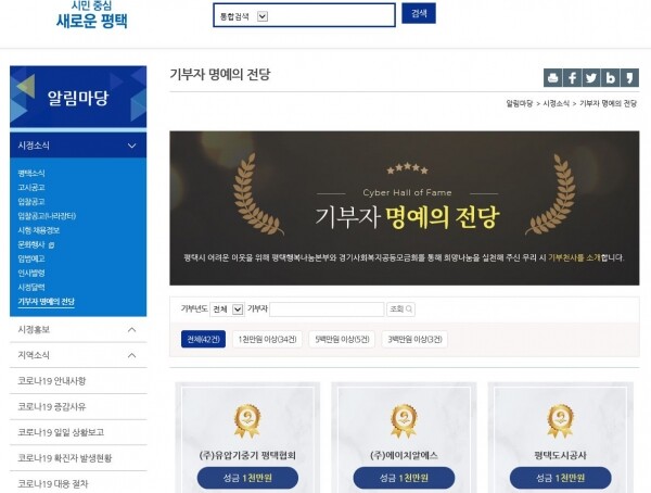정장선 시장은 “이번 누리집 오픈은 지역사회의 이웃사랑을 실천해 주시는 기부자의 마음을 기억하고 그분들의 명예를 기리는데 큰 의의가 있다”며 “나눔을 통해 선한 영향력을 펼치고 있는 기부자들께 다시 한번 감사드린다”고 말했다.