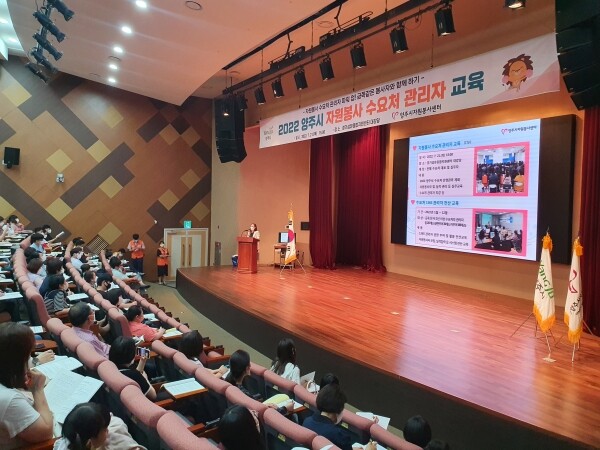 이날 교육에 참석한 강수현 양주시장은 “지난 2년간 코로나19 상황에서도 애써주신 여러분께 감사드리며 그동안 위축되었던 자원봉사 활성화를 위한 시간이 되기를 바란다”며“양주시가 행복동행의 복지도시로써 건강한 자원봉사 문화 정착되도록 관심과 지원을 아끼지 않겠다”고 수요처 관리자들을 격려했다.