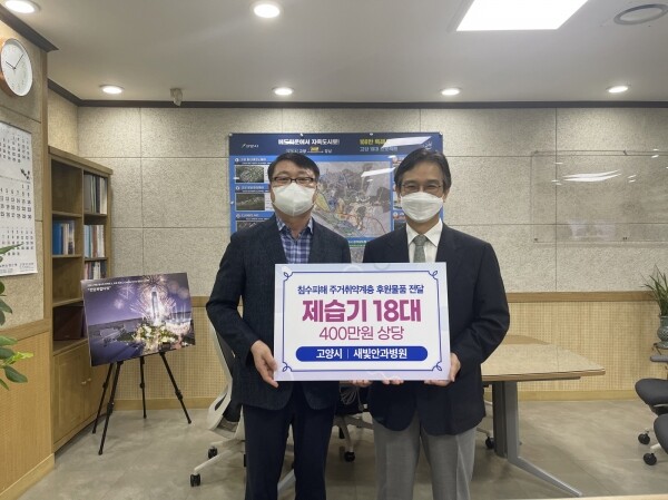 박수철 새빛안과병원 병원장은 “1994년 일산에서 안과전문진료를 시작한 새빛안과병원은 경기도 유일 안과전문병원”이라고 소개하며 “고양시주거복지센터를 통해 관내 주거취약계층의 어려움을 듣고 후원을 결정했다 침수피해를 입은 분들에게 도움이 되길 바란다”고 말했다.
