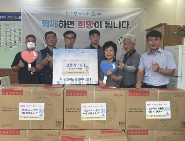 선풍기는 광명4동 지역주민들이 자발적으로 기부한 광사나눔봉사회 후원금으로 마련됐다.
