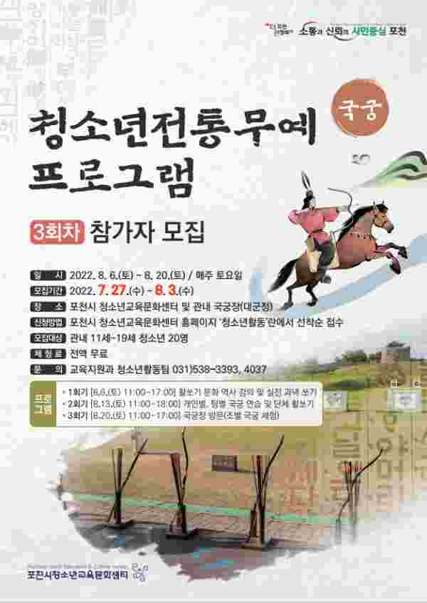 시 관계자는 “청소년들이 전통문화의 의미와 가치를 배울 수 있는 기회를 제공하고 전통 활쏘기 문화체험으로 민족적 자긍심과 인내력 및 집중력을 배우고 운동능력을 향상할 수 있는 시간이다”며 “이번 프로그램으로 청소년들이 전통문화의 의미와 가치를 배울 수 있는 기회를 제공하고 상호 배려와 스트레스 해소 등 건강한 성장에 도움을 줄 것으로 기대된다”고 말했다.