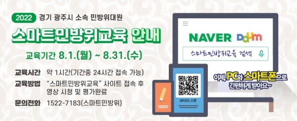 이에 따라 광주시 민방위 대원은 8월 1일부터 31일까지 PC나 스마트폰으로 스마트 민방위 교육 홈페이지에 접속해 이름과 생년월일 입력 후 본인 인증을 통해 로그인해 시청할 수 있다.