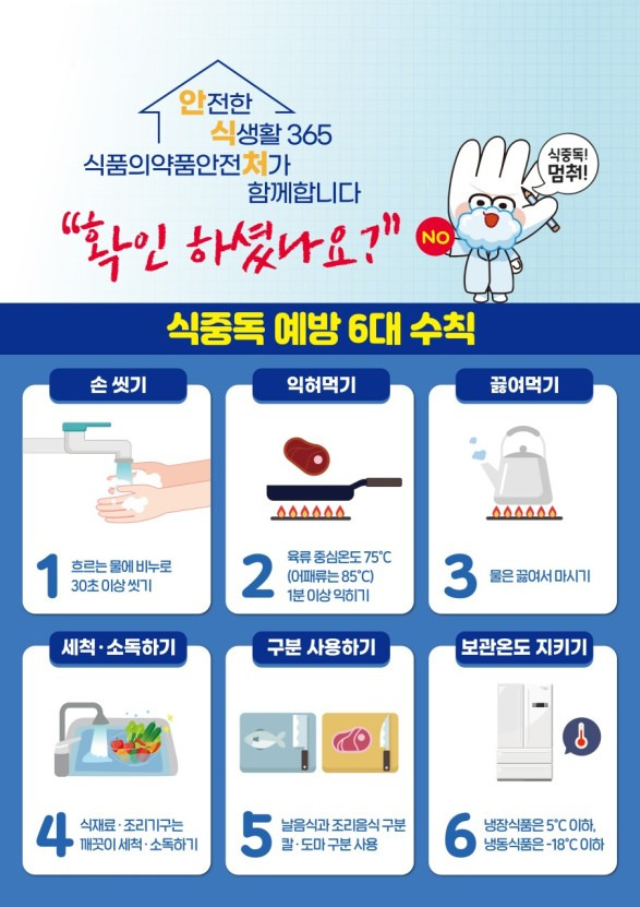 아울러 음식조리 시 식자재에 따라 조리도구를 구분해 사용하고 설사 등의 증상이 있는 경우 음식을 조리하지 않는 등 조리 위생 수칙을 준수해야 한다.