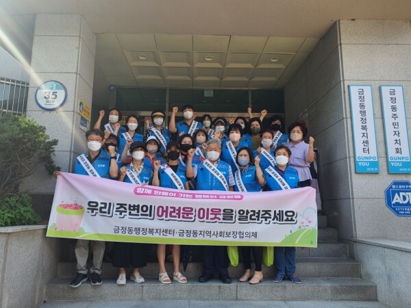 나순실 금정동장은 “경기침체로 어느 때보다 복지사각지대 발굴을 위한 이웃들의 관심이 필요한 시기에 캠페인을 펼친 금정동 지역사회보장협의체와 유관기관에 깊은 감사를 드린다”며 “지역주민들 역시 관내 도움이 필요한 위기가구를 발견할 경우 금정동 행정복지센터로 연락해 달라”고 당부했다.