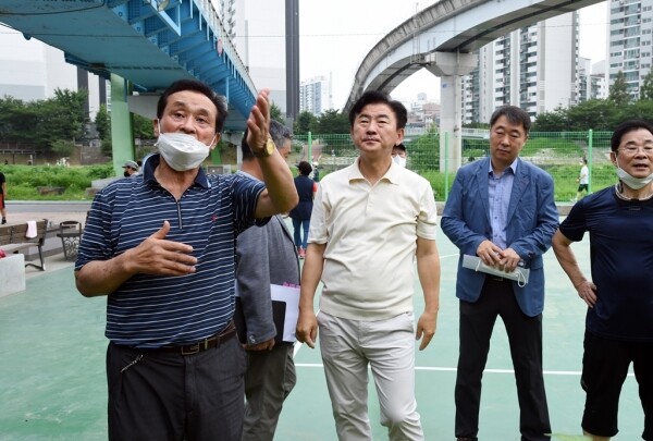 이날 김동근 의정부시장은 중랑천 인도교 ~ 부용천 합류부까지 약 2.5km의 달하는 거리를 걸으며 중랑천 산책로와 체육시설을 이용하는 시민들의 불편사항을 직접 듣고 점검했다.