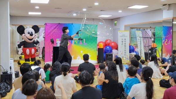 어린이문화행사 ‘여름아 부탁해~’ 지난 7월23일 영유아와 부모가 함께 참여해 ‘아름다운 비눗방울이 들려주는 감동적인 이야기’를 진행했다.