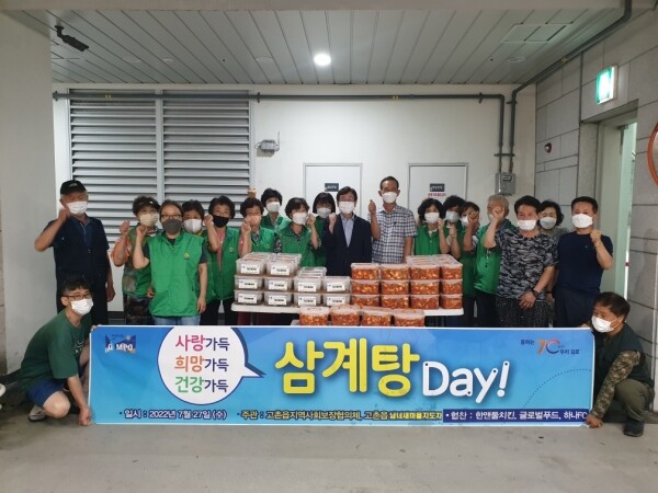 고촌읍지역사회보장협의체 위원들과 고촌읍남녀새마을지도자회 회원들이 삼계탕을 직접 만드는데 팔을 걷어붙였으며 한앤둘 치킨, 글로벌푸드, 하나FC에서 닭과 김치 등을 적극 후원해 줬다.