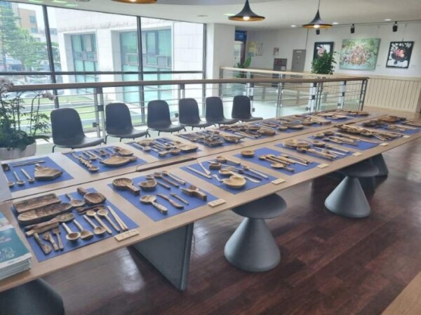 이번 전시회에는 수강생들이 직접 만든 나무수저·포크·나이프·접시 등 작품 180여 점이 전시됐다.