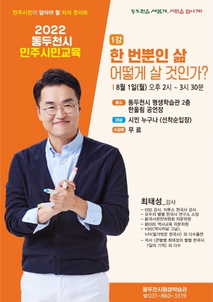한편 민주시민교육 강좌는 8.8, 8.16, 8.25, 8.31에 걸쳐 총 5강에 걸쳐 진행되며 일반 성인뿐만 아니라 학생을 대상으로 선착순 접수로 운영된다.