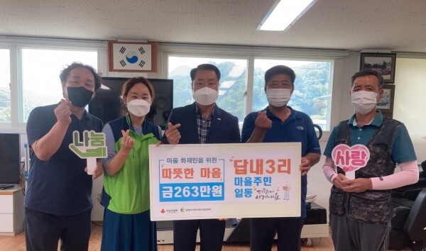 답내리에 위치한 비닐하우스에서 혼자 거주해온 어르신 댁에 지난 6월 원인불명의 화재가 발생한 이후 거처 없이 마을회관에서 생활하는 어르신을 위해 자발적으로 답내3리 마을 주민과 이웃 동네 답내 1,2리 마을 이장, 화도읍 이장협의회 등 십시일반으로 함께 모아 성금을 마련했다.